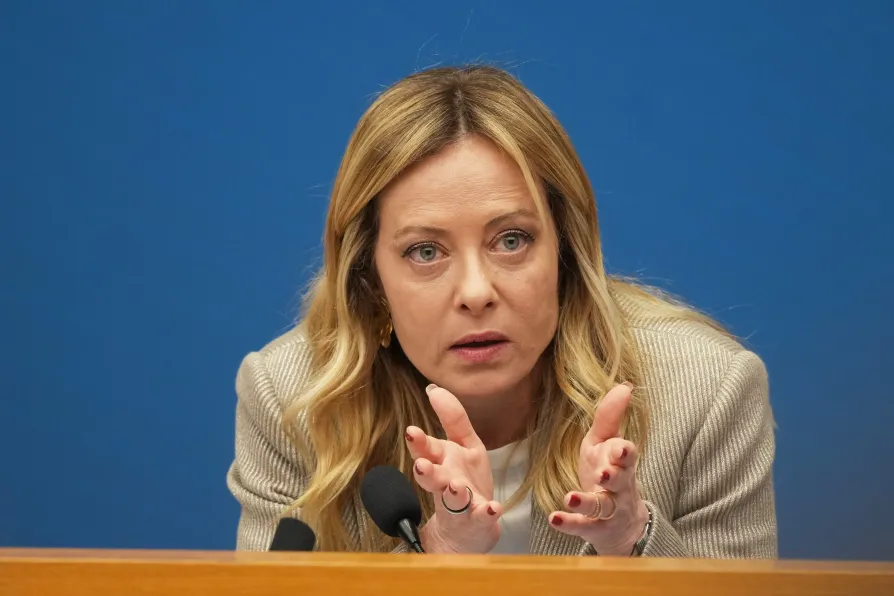 Italian Prime Minister Giorgia Meloni holds her annual start-of-the-year press conference in the press room at the Lower Chamber, in Rome, January 9, 2026