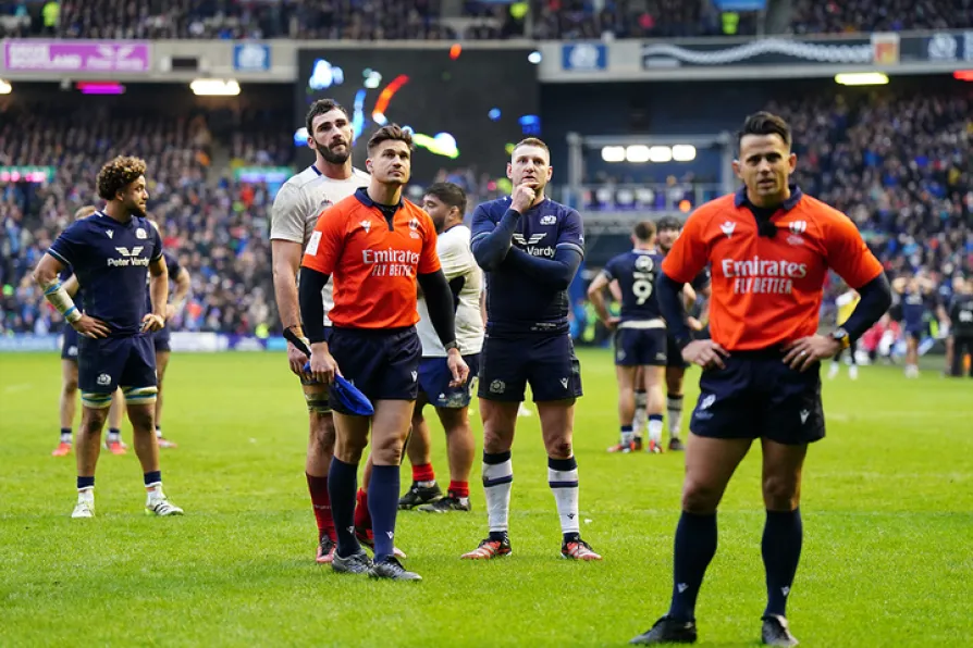 The Scots — trailing 20-16 — thought they had secured victory when replacement lock Sam Skinner pushed through and appeared to ground the ball on the line under a ruck of bodies as the clock ticked past the 80-minute mark.
