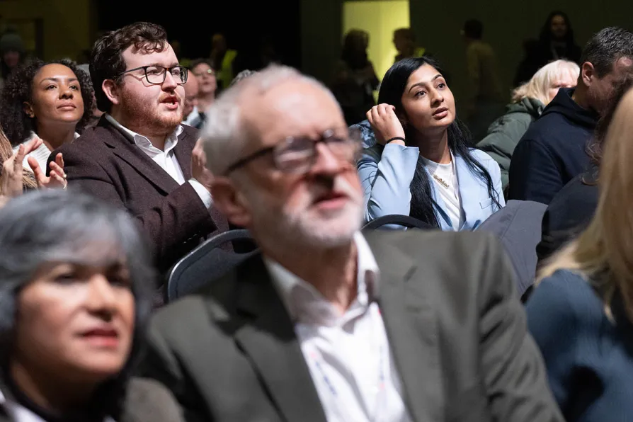 Jeremy Corbyn and Zarah Sultana during the Your Party founding conference at the ACC Liverpool, November 30, 2025