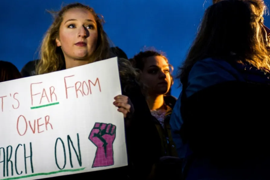 Students at Michigan State University protest against the school's handling of allegations of sexual abuse by former coach Larry Nassar